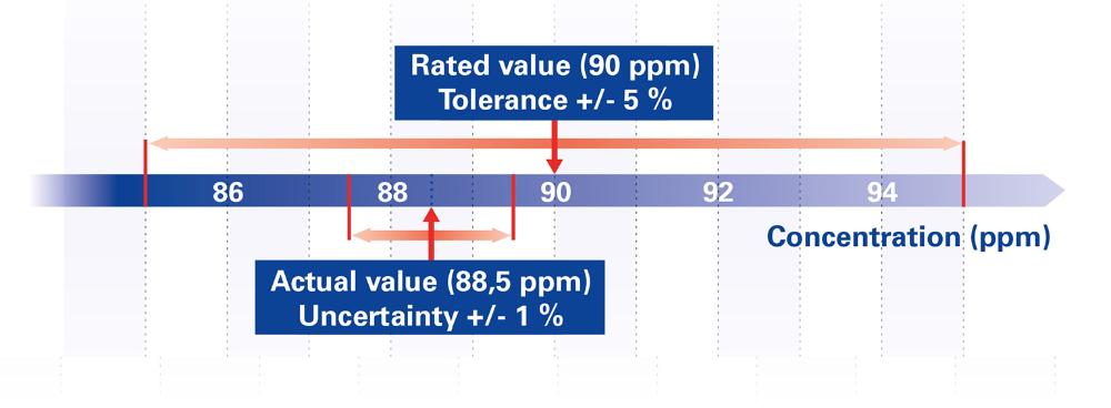 Toleranz, Unsicherheit und Stabilitätsdauer eines Gasgemisches