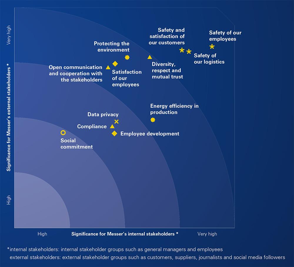 The key elements of our strategic sustainability process are the product of our daily and long-term actions and activities. When evaluating these topics, we consider it important to include representatives of all stakeholder groups. For this reason, we have compiled a transparent list of twelve core topics. In order to differentiate the priorities of our internal stakeholder groups, 36 senior managers and 534 employees voluntarily completed an anonymous online survey where they ranked the topics on a scale of one to ten, with one being important and ten extremely important. Selected journalists and followers of our social media channels also participated in the anonymous online survey. As in previous years, the safety of our customers and employees is of utmost importance to our company. Our decisions can affect all key issues and also have potential impacts on stakeholders outside the organization as well. For this reason, all major projects, both in-house and external to the organization, are relevant.