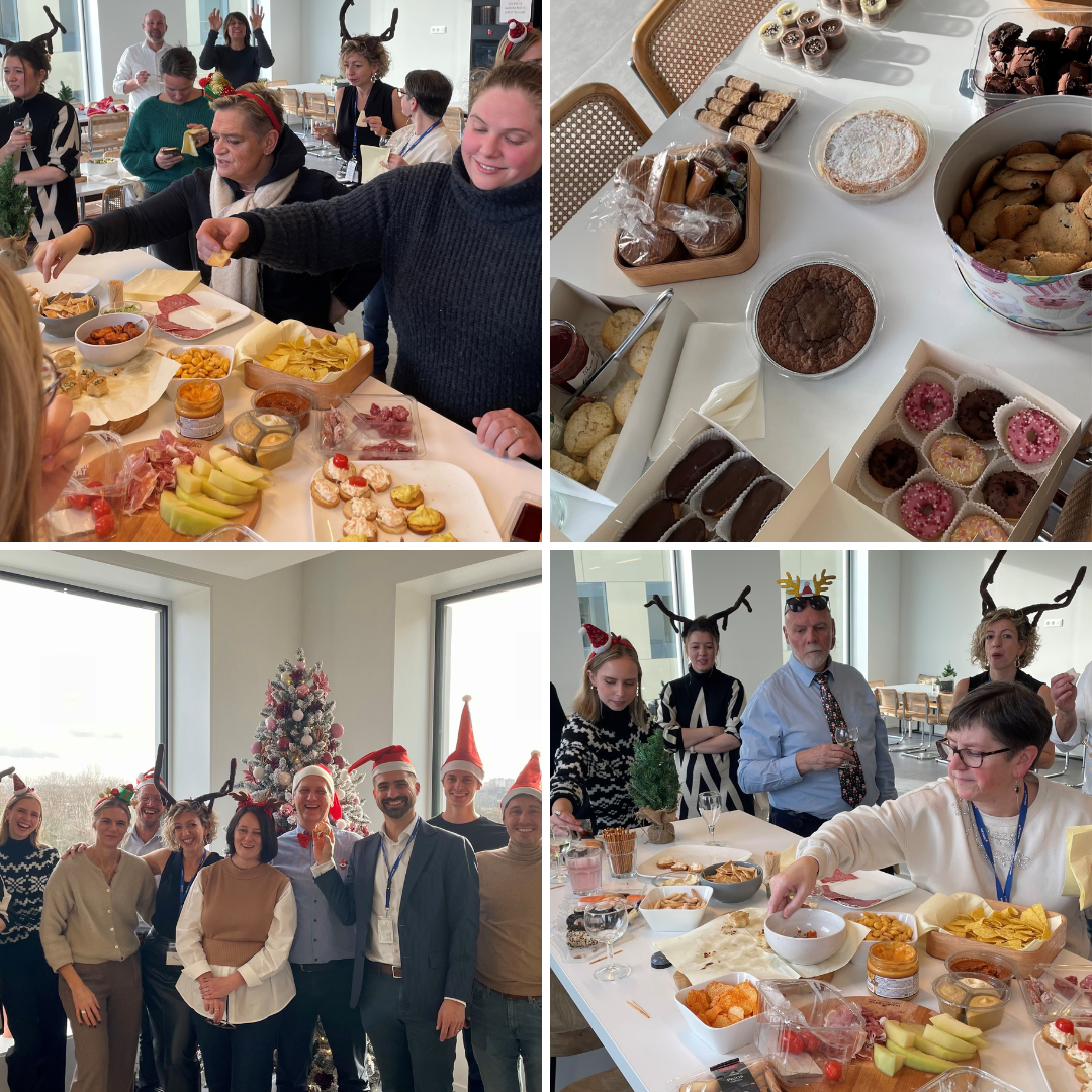 Pour le dernier vendredi avant Noël, certains collègues ont décidé que cela pouvait aussi être un repas de fête. 🍴🎄 Et c'est ce qui s'est passé, chacun a apporté quelque chose de savoureux ce jour-là, la direction a fourni les boissons et tout a été partagé à cœur joie.