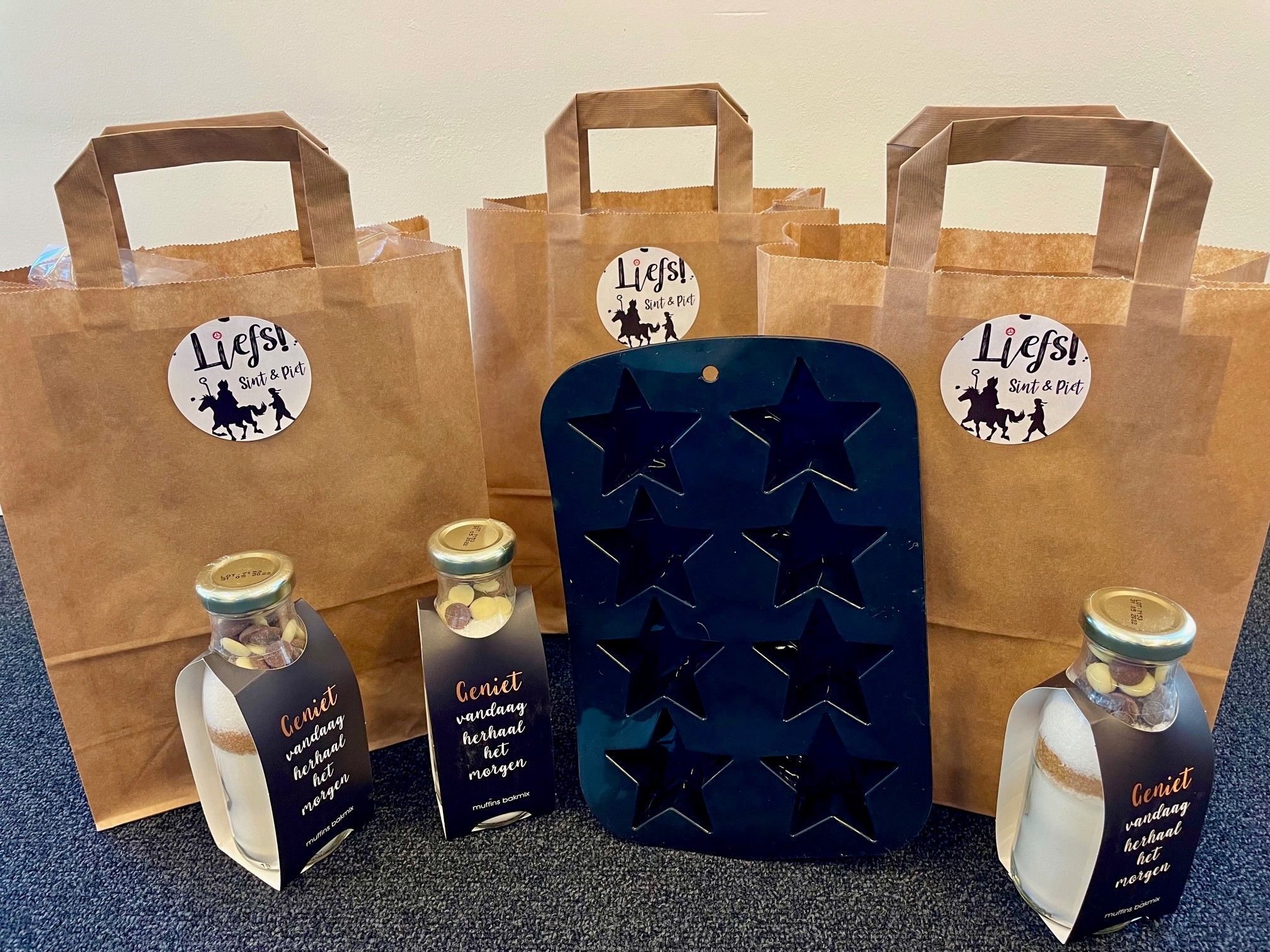 Saint-Nicolas nous a aussi rendu visite ! Il a fourni des ingrédients et des moules à pâtisserie pour que nos collègues puissent faire leurs propres muffins au chocolat à la maison. 🍪 Ça va être un régal !