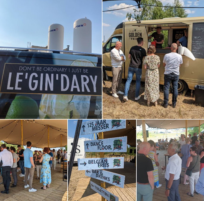 Messer a 125 ans ! 🎉 Raison de plus pour fêter l'événement ! 🤩 Toutes les succursales de Messer dans différents pays ont organisé simultanément une fête en l'honneur de cet anniversaire. Notre fête s'est déroulée près de l'usine de remplissage à Zwijndrecht. Une ambiance de festival complet a été créée avec plusieurs food trucks pour des boissons savoureuses, des snacks et des glaces. 🍟 🍦 🎶 Bien entendu, il ne fallait pas manquer un peu de musique pour faire bouger les jambes ! A 125 ans de Messer ! 💪