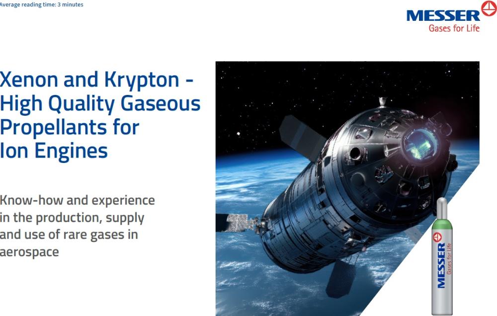 Ion thrusters represent a possible propulsion method for space travel and use the thrust of an ion beam for propulsion. Compared to chemical engines, which are used when launching a rocket, ion propulsion is suitable as a secondary engine for satellites and space probes. Ion propulsion systems consume less propellant and enable energy-efficient continuous operation, for example for long trajectories of space probes or satellites. High-purity Xenon is established as a gaseous fuel, but Krypton can also be used as an efficient alternative.